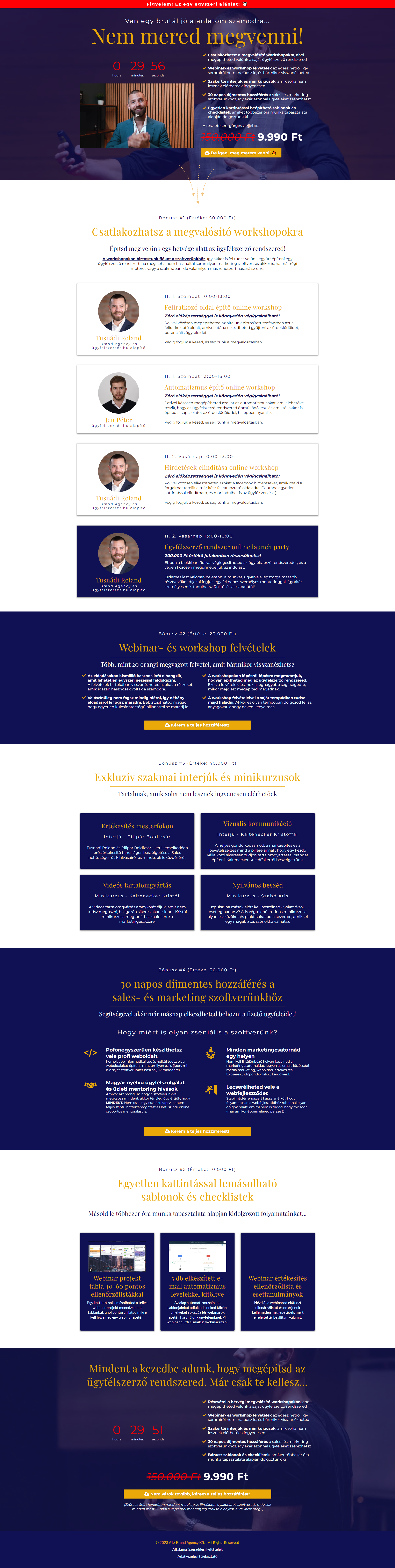 Tusnádi Roland 90 napos high ticket képzése heti 2 hívásban segített elmélyíteni a rendszerekben való gondolkodást, valamint az ügyfélszerzésnek azt a metodikáját, amire ő ATS módszertanként hivatkozik: